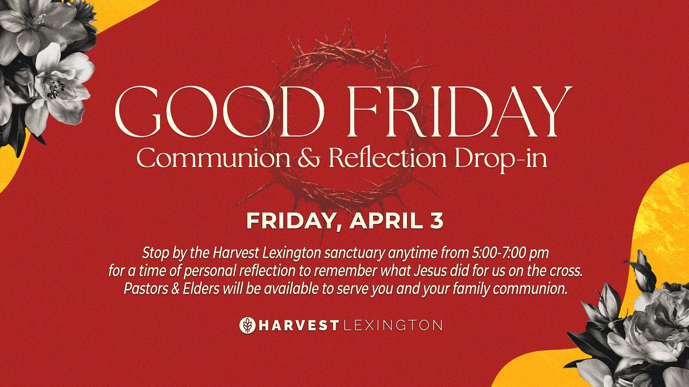 You can come at any time from 5:00-7:00 pm for a period of reflection, communion, and prayer. This event is always a powerful way to begin Easter Weekend at Harvest Church, and we'd love for you to be a part of it!