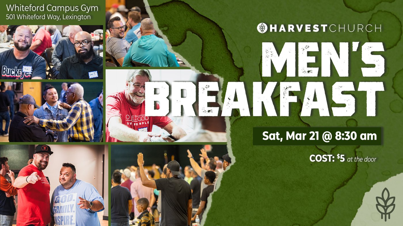 A main connection point for our Men's Ministry is our Monthy Men's Breakfasts. Each month, the Men gather at our Whiteford Campus for Breakfast, Worship and a Fresh Word from one our pastors or leaders. Our breakfasts are an awesome opportunity to meet other Harvest Men and serve as a rally point to connect our men to God and the community.
